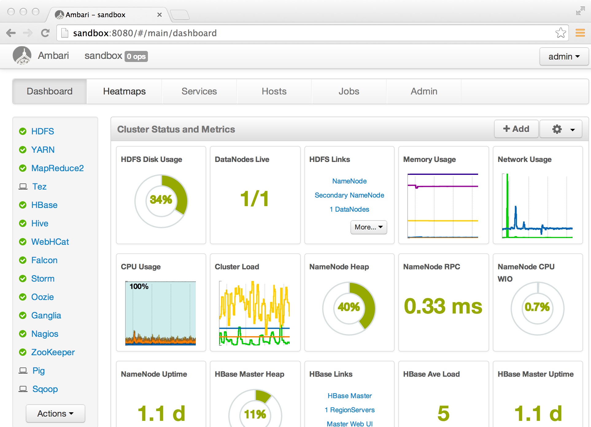 Open your browser and verify that all services are running. We will only need HDFS and MapReduce but “all lights green” is always good